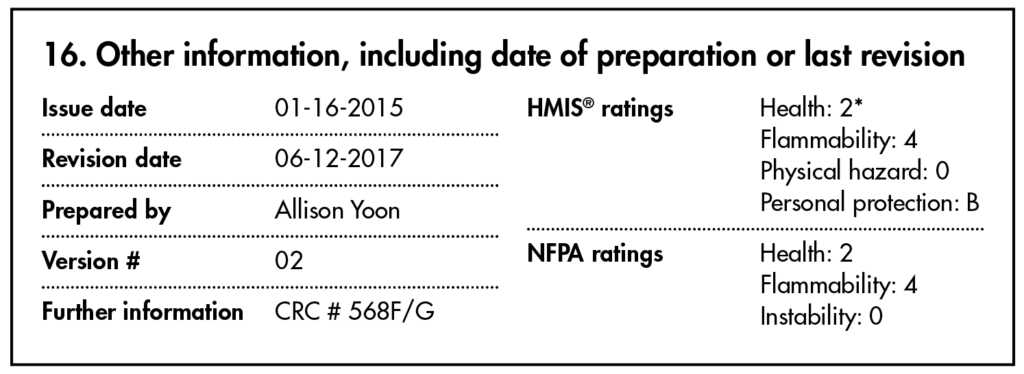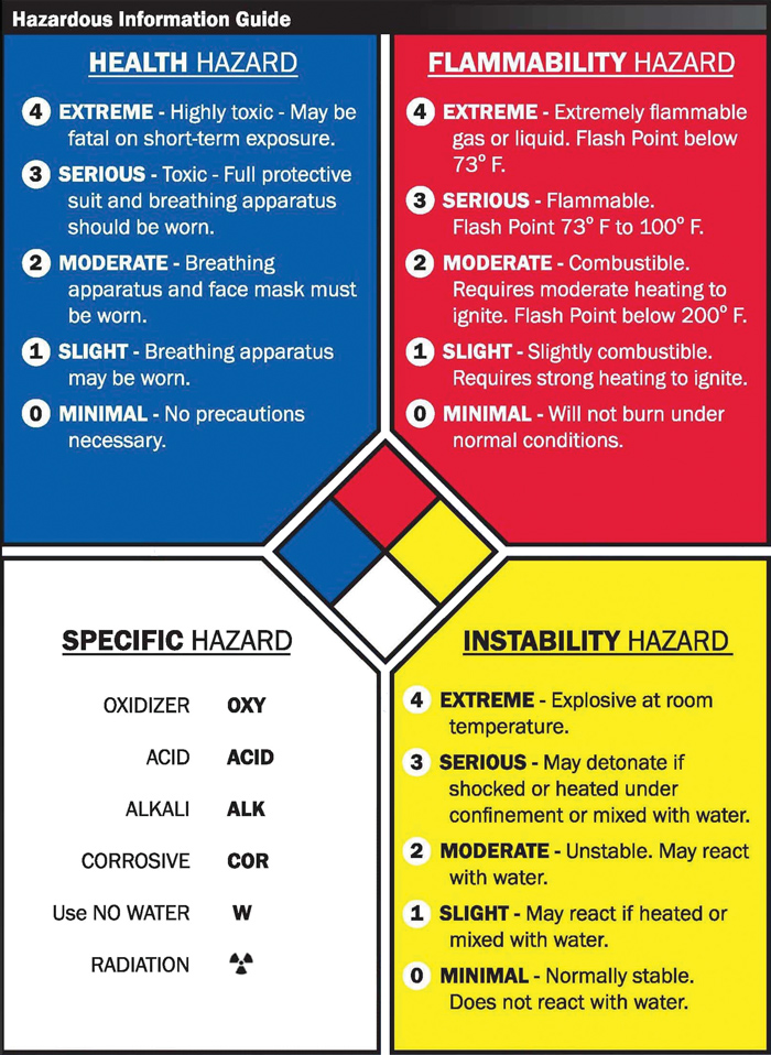 Figure 3 shows that this lubricant has very similar ratings under NFPA and HMIS. To understand what those ratings mean, review the detailed rating levels.