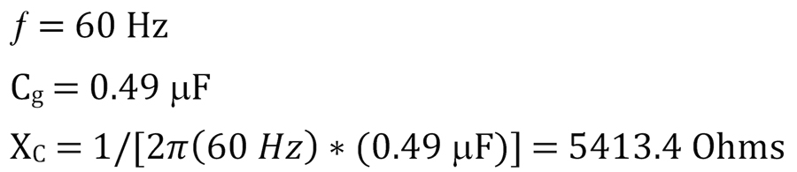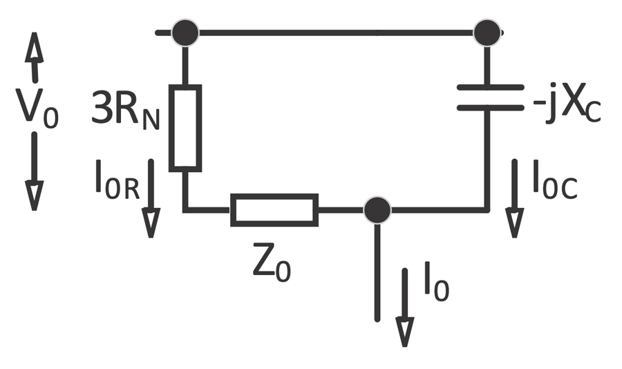 The 60 Hz component neutral current flowing on the secondary side of the grounding bank (Figure 3) is calculated as follows for a ground located at the generator terminals: