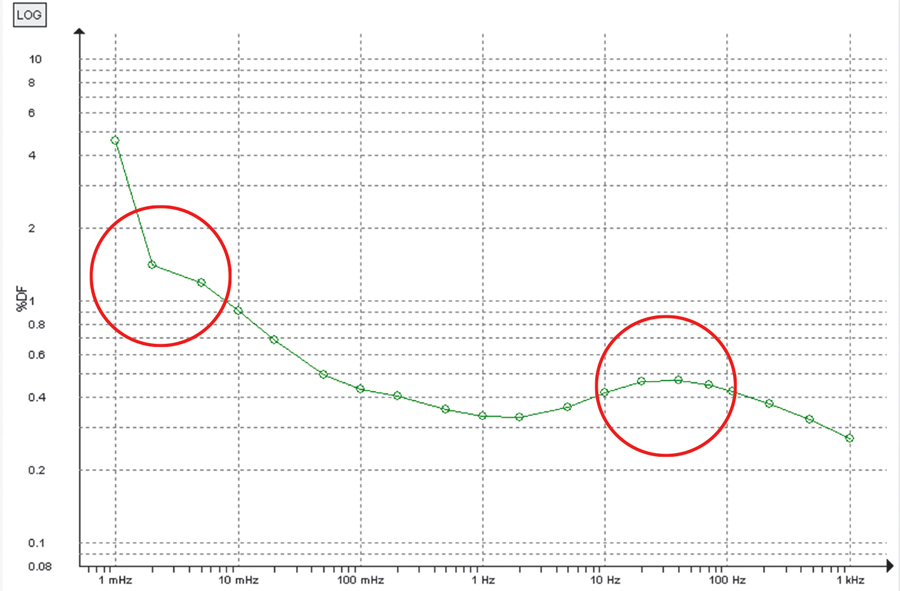 - Because 0.1-Hz testing requires long stabilization times, measurements are sensitive to polarization drift and leakage currents.[4][12]